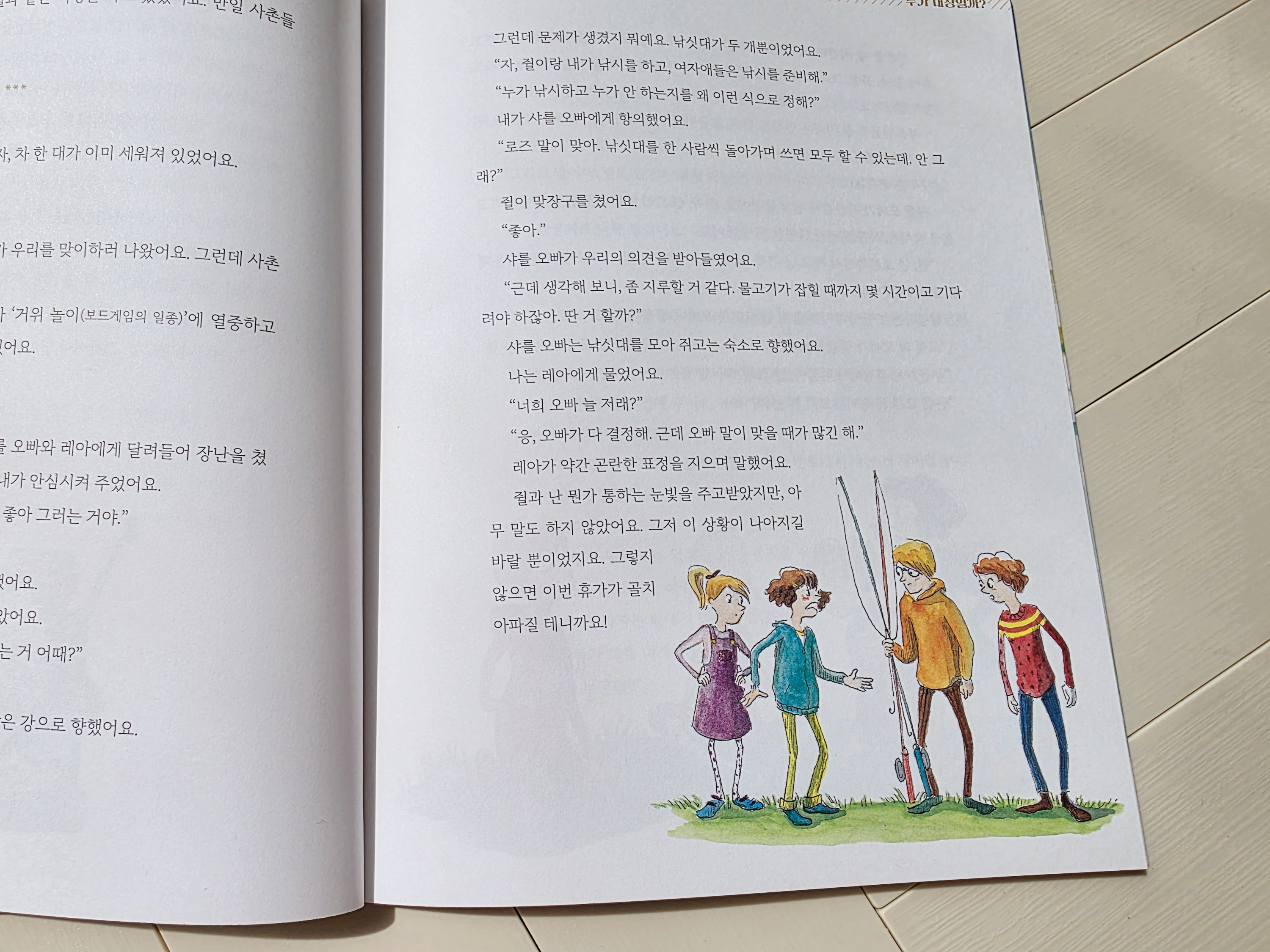 샤를은 남자아이들만 낚시를 하자고 했고, 이에 다른 아이들이 불만을 제기했습니다.