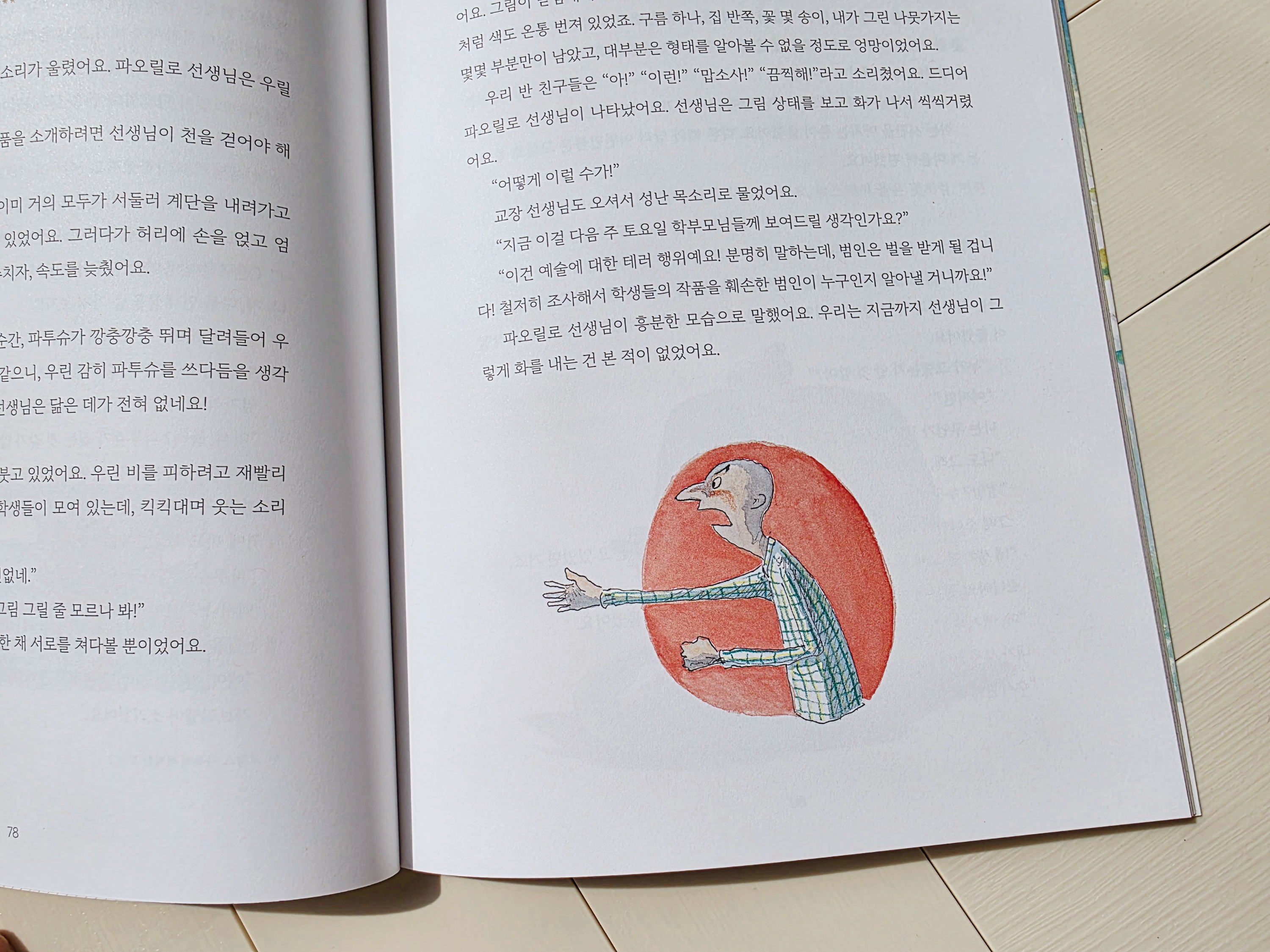 그리고 전시를 보러 온 학부모들은 그림을 보고 감탄하며 이야기가 마무리됩니다.