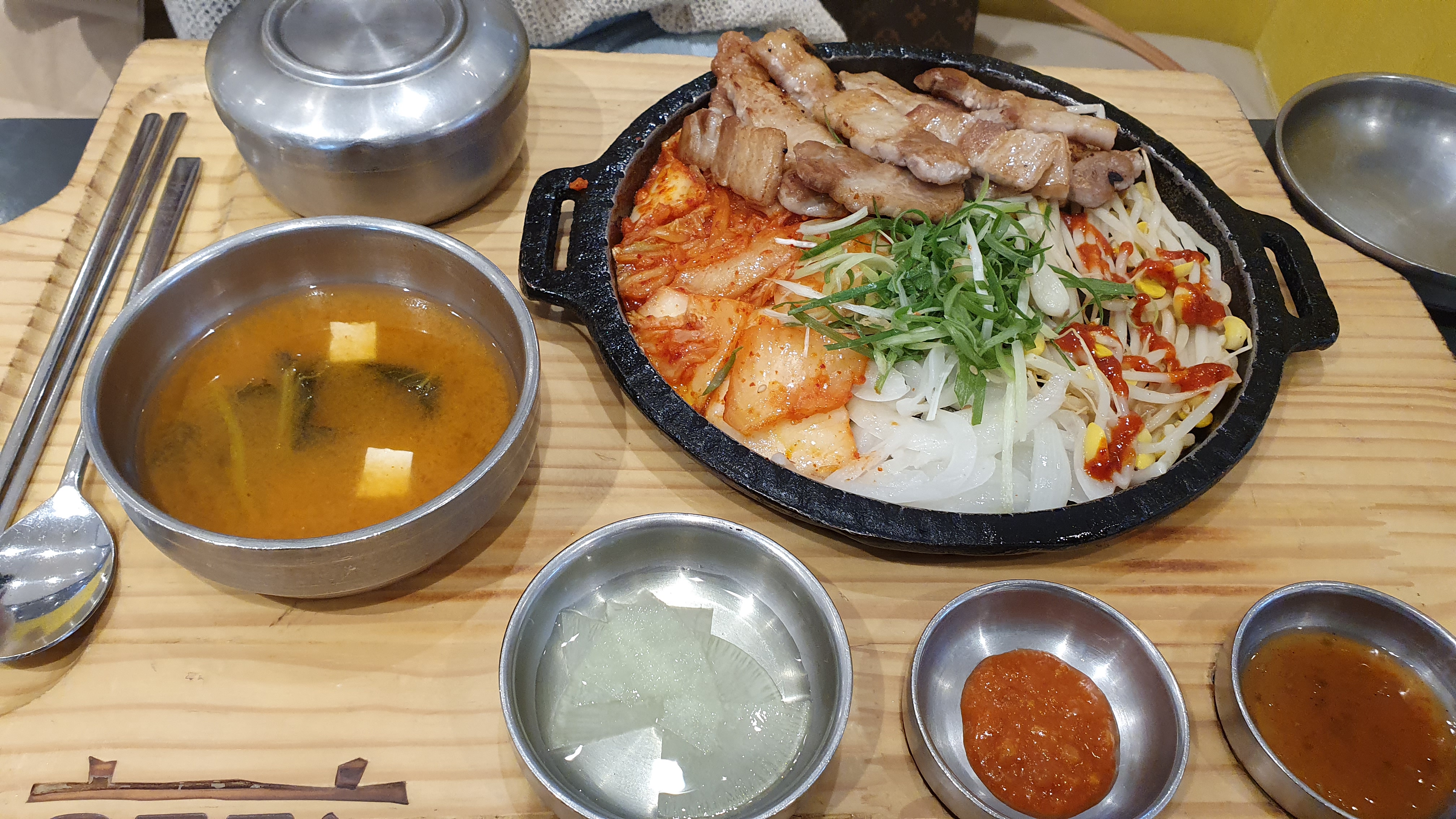 고기나 김치,파,콩나물의 조화도 괜찮았고, 함께 나오는 국도 맛있었어요.