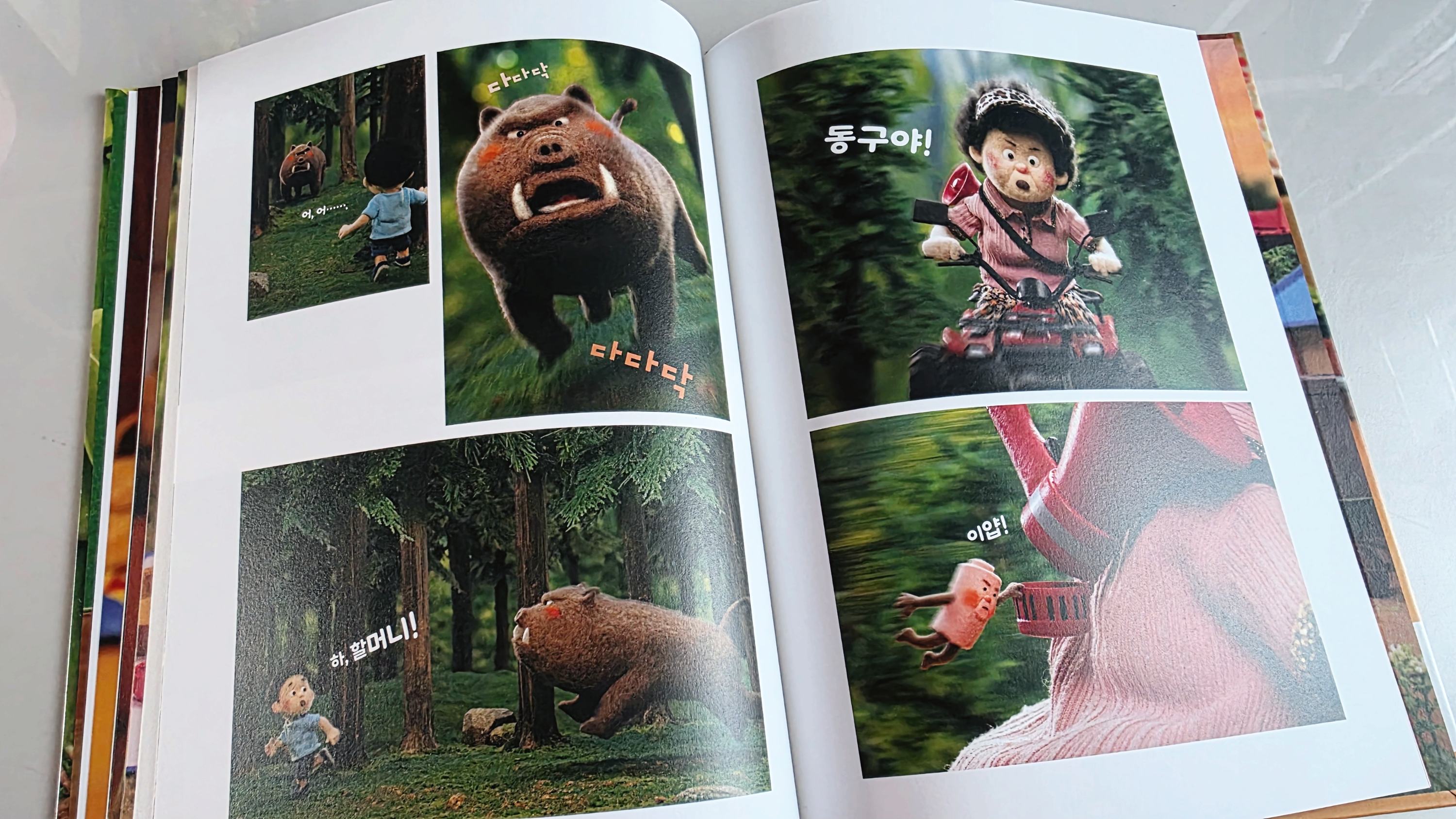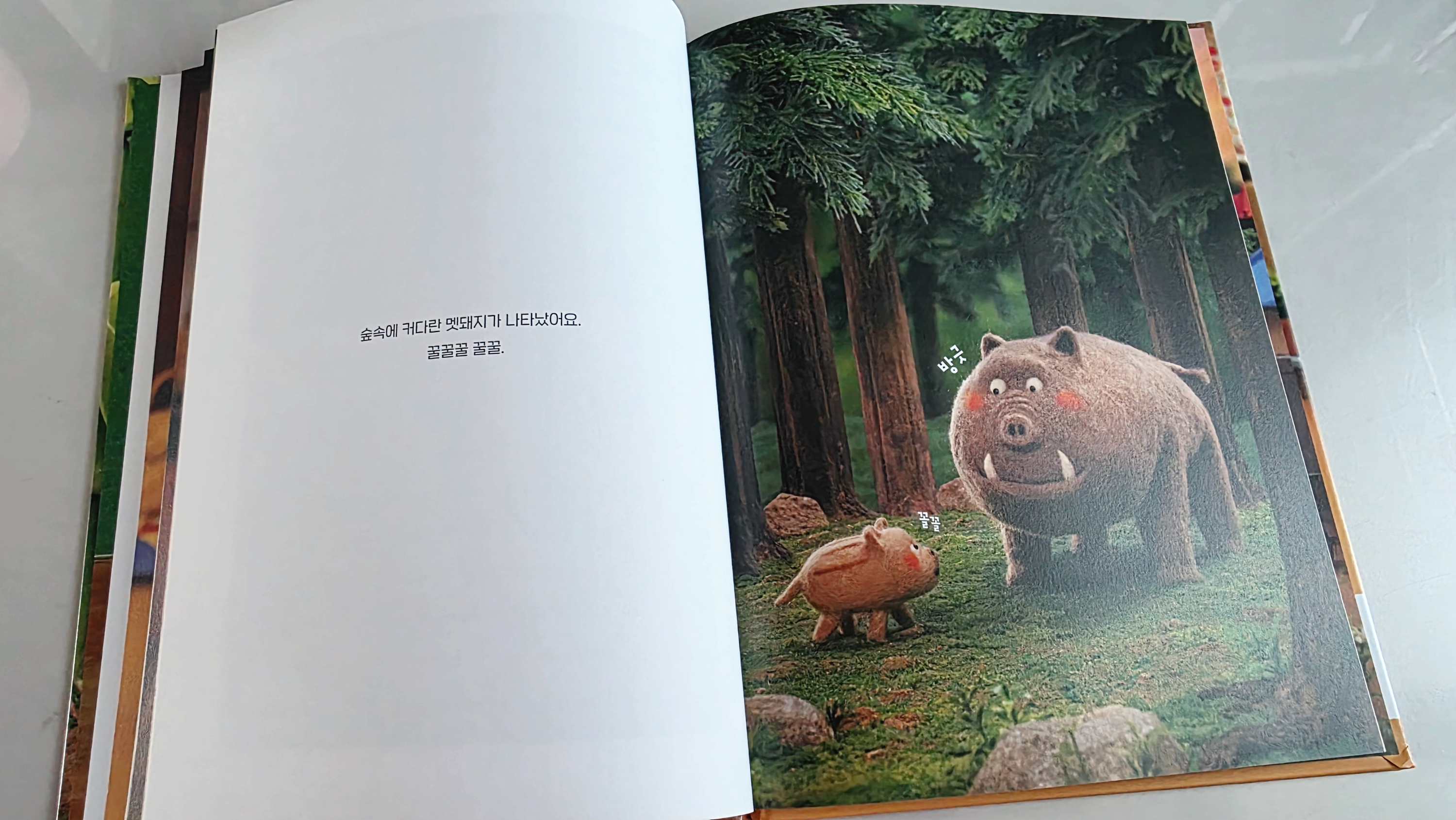 간혹 동화책 중에 너무 무섭게 표현된 경우 아이들이 무서워해서 그 책을 안보는 경우도 있는데 <건전지 할머니>의 책에 나오는 멧돼지는 영아들이 봐도 무서워 하지 않을 만큼 귀엽게 표현되어 있습니다.