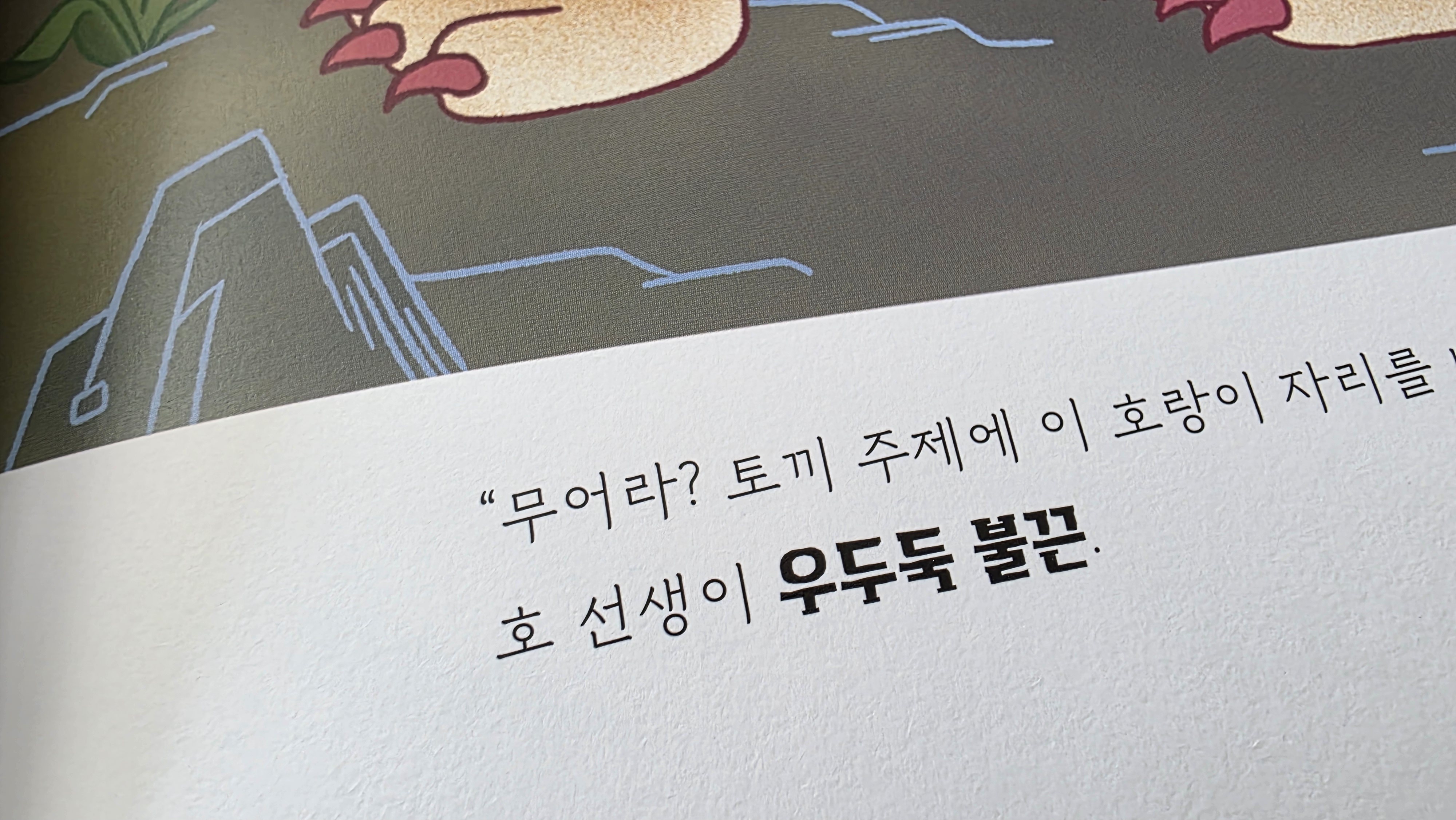 하지만 [토끼전 대 호랑전]은 주제 뿐만 아니라 문체나 표현 방식이 우리나라 전통을 자연스럽게 나타내는 점이 아주 좋습니다.