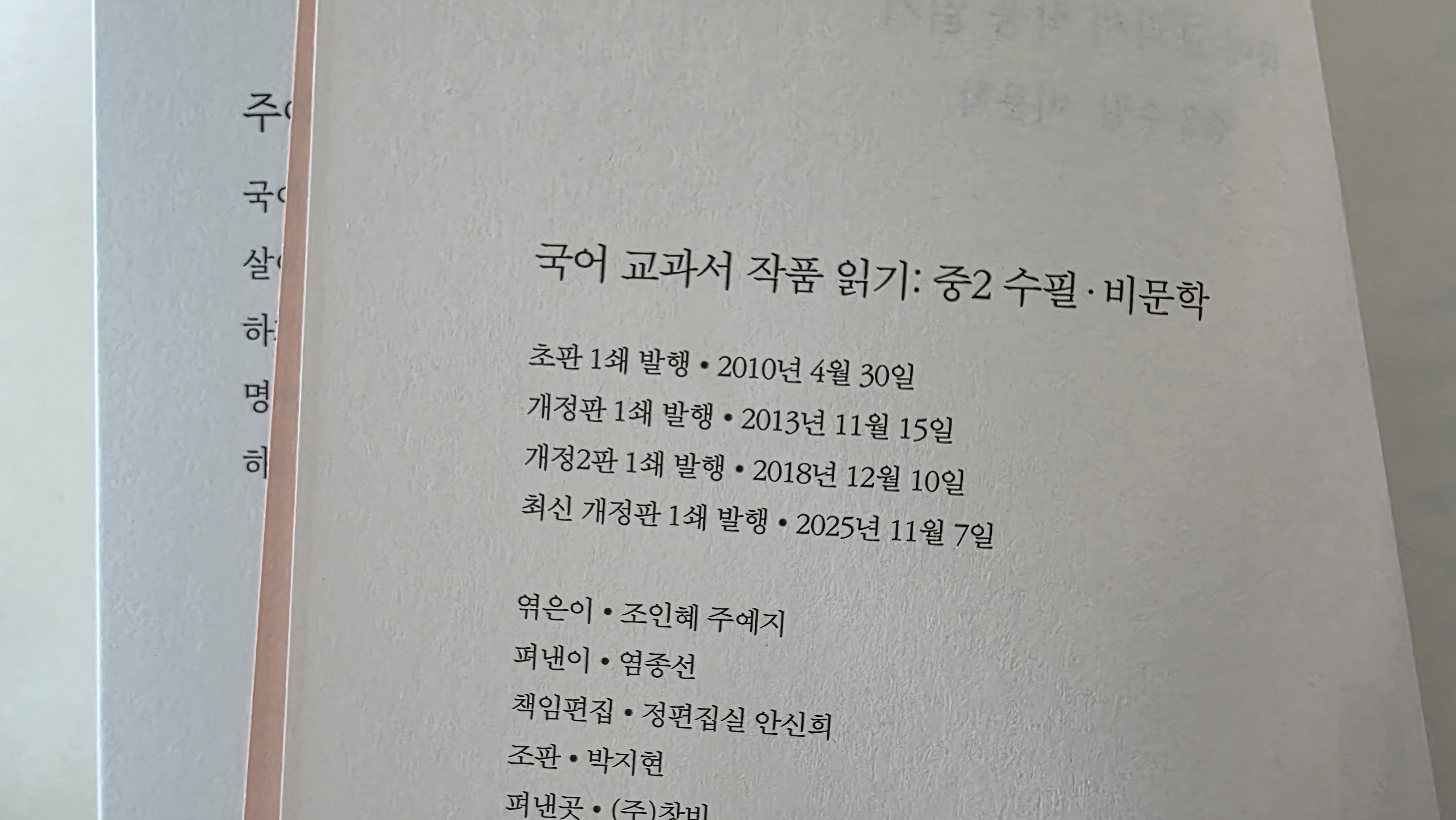 오늘 볼 책은 [국어 교과서 작품 읽기]- 중2 수필과 비문학편입니다.