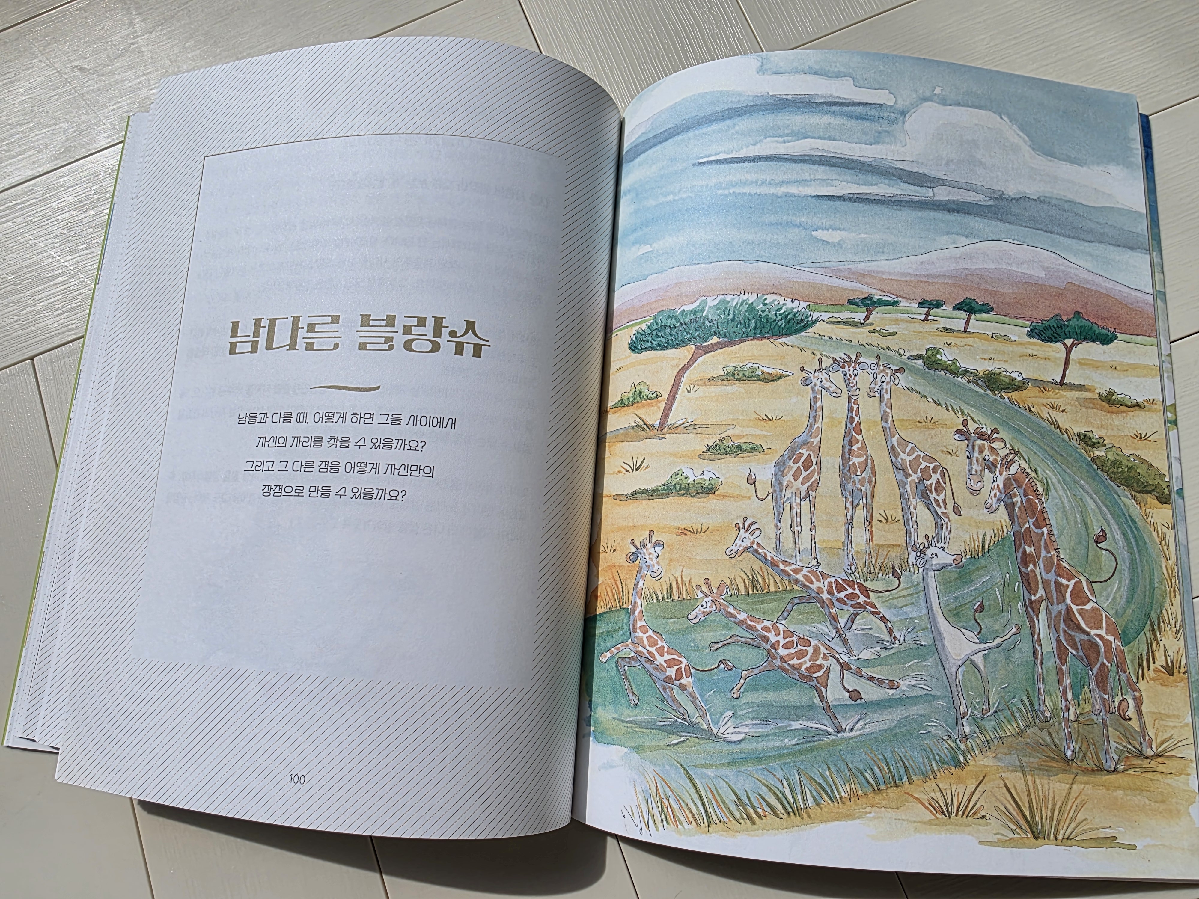 *출판사의 지원으로 도서를 제공받아 6학년 아이가 직접 작성한 서평입니다. '남다른 블랑슈’는 다른 기린들과는 달리 무늬가 없는 특별한 기린의 이야기입니다.블랑슈는 원래 기린들이 가지고 있는 갈색 점박이 무늬가 없고, 온몸이 하얀 기린입니다.‘블랑슈’라는 이름도 ‘하얀색’이라는 뜻을 가지고 있습니다.블랑슈는 건강하고 평범하게 자랐지만, 다른 기린들은 블랑슈와 잘 어울려 놀지 않았습니다.학교에 갈 나이가 되자, 아이들은 블랑슈를 놀리고 웃었습니다. 선생님은 아이들을 혼냈지만, 일부 아이들은 계속 블랑슈를 괴롭혔습니다. 어느 날 수업 시간에 나뭇잎의 모양에 대해 질문을 받았을 때, 블랑슈는 그것을 잘 알고 있어 바로 대답했습니다. 하지만 다른 아이는 블랑슈가 잘난 척을 한다며 다시 놀렸고, 블랑슈는 눈물이..